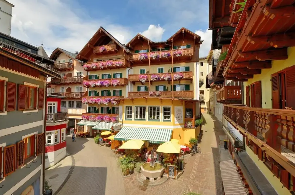 Das Hotel Zimmerbräu befindet sich zentral in Markt 89, direkt am Ufer des Wolfgangsees in St. Wolfgang, Österreich. Das Haus bietet eine Mischung aus traditionellem Charme und modernem Komfort, wobei besonders die geräumigen Zimmer positiv hervorgehoben werden. Gäste schätzen vor allem die zentrale Lage, die es ermöglicht, Sehenswürdigkeiten wie das Ralph Benatzky Denkmal oder das Robert Stolz Denkmal bequem zu Fuß in rund drei Minuten zu erreichen. Auch kulturelle Highlights wie das Heimatgold St. Wolfgang oder der Hubertuskeller liegen nur wenige Meter entfernt und laden zum Verweilen ein. Für Naturliebhaber ist der private Strandzugang sowie die Nähe zur Zwölferhorn-Seilbahn (etwa sieben Kilometer) ideal, um Wanderungen auf den Schafberg oder Ausflüge entlang des Seeufers zu unternehmen. Familien können von den speziellen Familienzimmern profitieren, während Reisende mit einem Flugzeugankunft vom Flughafen Linz (rund 76 Kilometer entfernt) einen Shuttle-Service nutzen können. Ein besonderes Highlight sind das außergewöhnliche Frühstücksangebot und die Möglichkeit eines kostenlosen Parkplatzes auf dem Grundstück – wenn auch ohne Überdachung und mit etwas anspruchsvoller Anfahrt. Die Kombination aus lokaler Atmosphäre, praktischen Annehmlichkeiten und direkter Seelage macht das Hotel zu einer passenden Wahl für Aufenthalte zwischen Kultur, Natur und Entspannung.